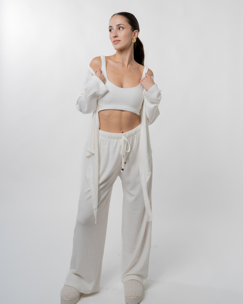 Meet the Ariana Crop Top, your cozy autumn essential! Made from soft, elastic fabric, it offers comfort and style for cooler days. Pair it with the matching Ariana Pants and Ariana Wrap Top for a chic, layered look that’s perfect for the season!