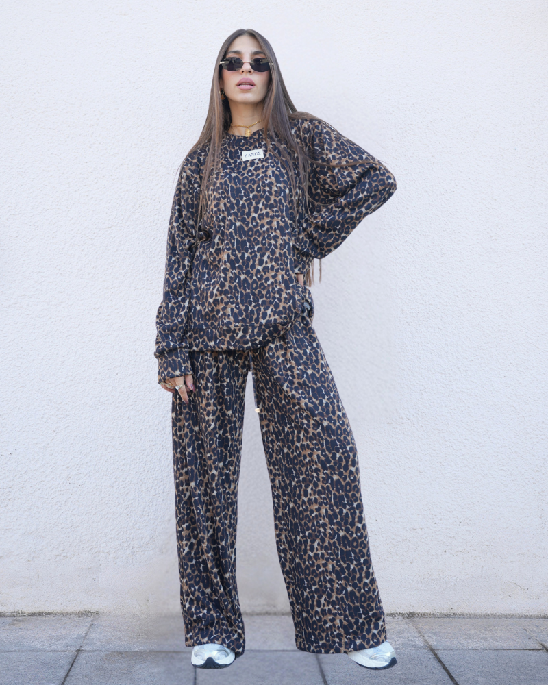 The Eliza Tracksuit Set brings a cozy twist to knitwear. Designed to look like a classic hoodie set but made from soft knitted fabric, it’s your go-to for all-day comfort and relaxed style. Available in black, khaki, and leopard.